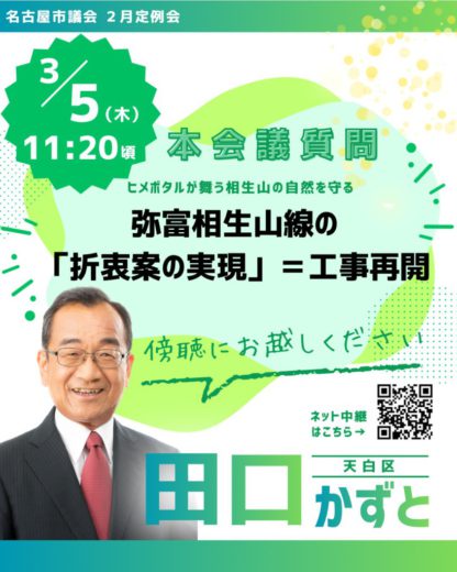 名古屋市会2月定例会が2月19日~3月19日の日程で開会し、市長から新年度当初予算及び関連議案、今年度補正予算案などが提案されました。
