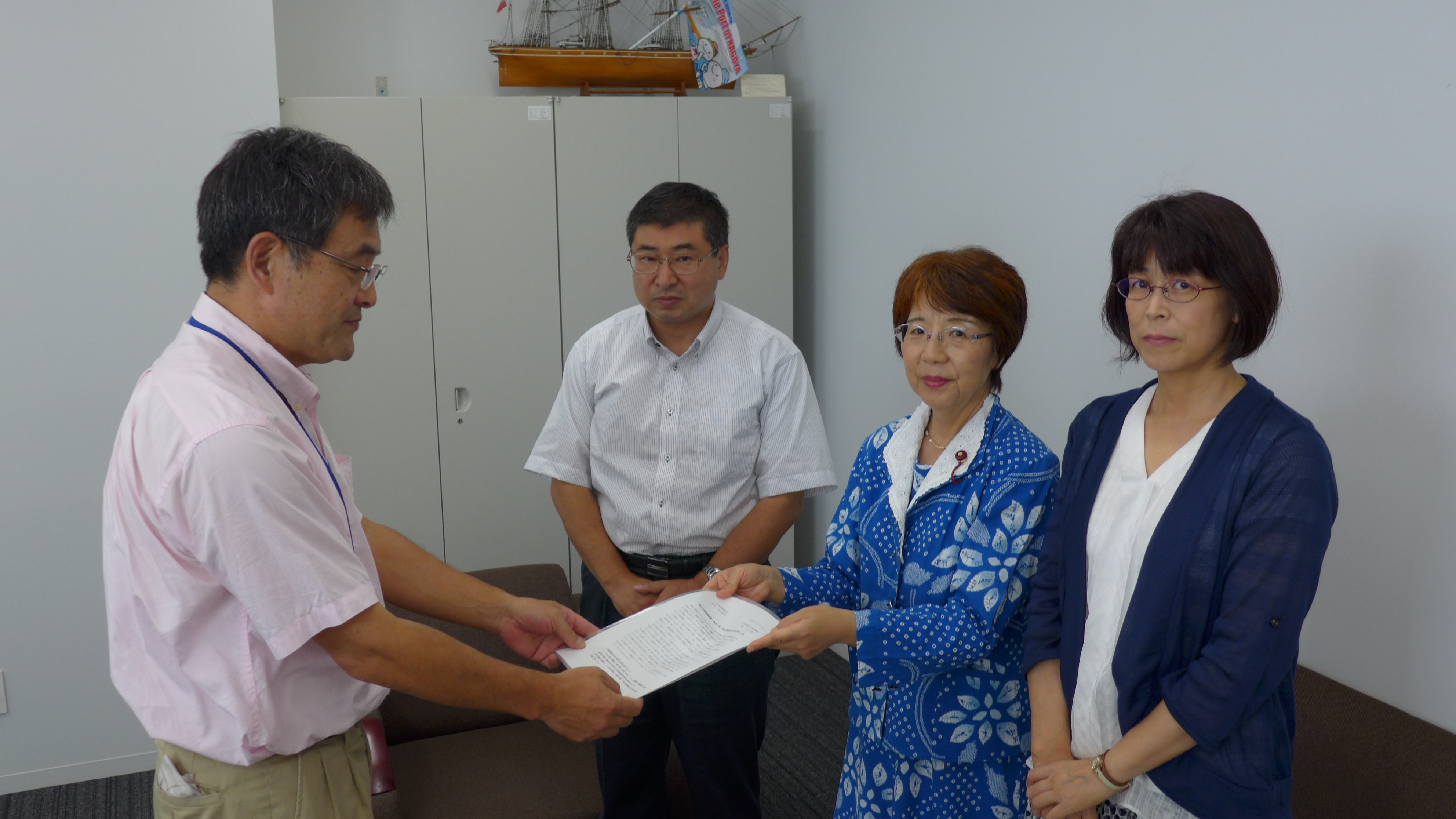 安倍政権が憲法9条を変え、国防軍をつくることを掲げているもとで、3項目目の「日本国憲法を厳守し、とりわけ9条を不戦・平和の精神をあらゆる港湾行政に貫くこと」の内容については、今回の申し入れの特徴であり、応対された名港管理組合のみなさんからは、「憲法守るのは職員として当然のことです」などの対応がありました。