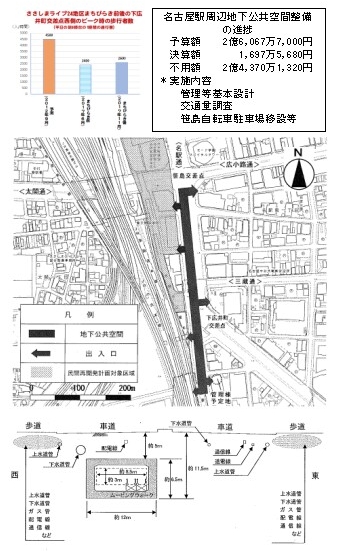 「リニア」開業を見据えた街づくりの一環として計画された、笹島交差点から南に向けての巨大地下通路の整備では、その必要性として、「名駅通の歩行者量の増加」や、「名古屋駅からの距離感の軽減」などが挙げられていました。しかし、この年、ささしまライブ24地区の「まちびらき」後の歩行者量の調査結果では、休日のピーク時ですら、予測量の6割程度にしか達しませんでした。あおなみ線、ウエルカムバスの利用客数も増えており、不要な地下通路計画は中止すべきです。